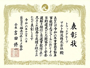 神奈川県トラック協会様より事業自動車事故防止コンクールで